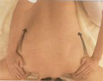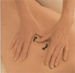 1. Masajı bitirirken, hafifçe çukurlaştırdığınız ellerinizi gevşekçe bel çukurunun
